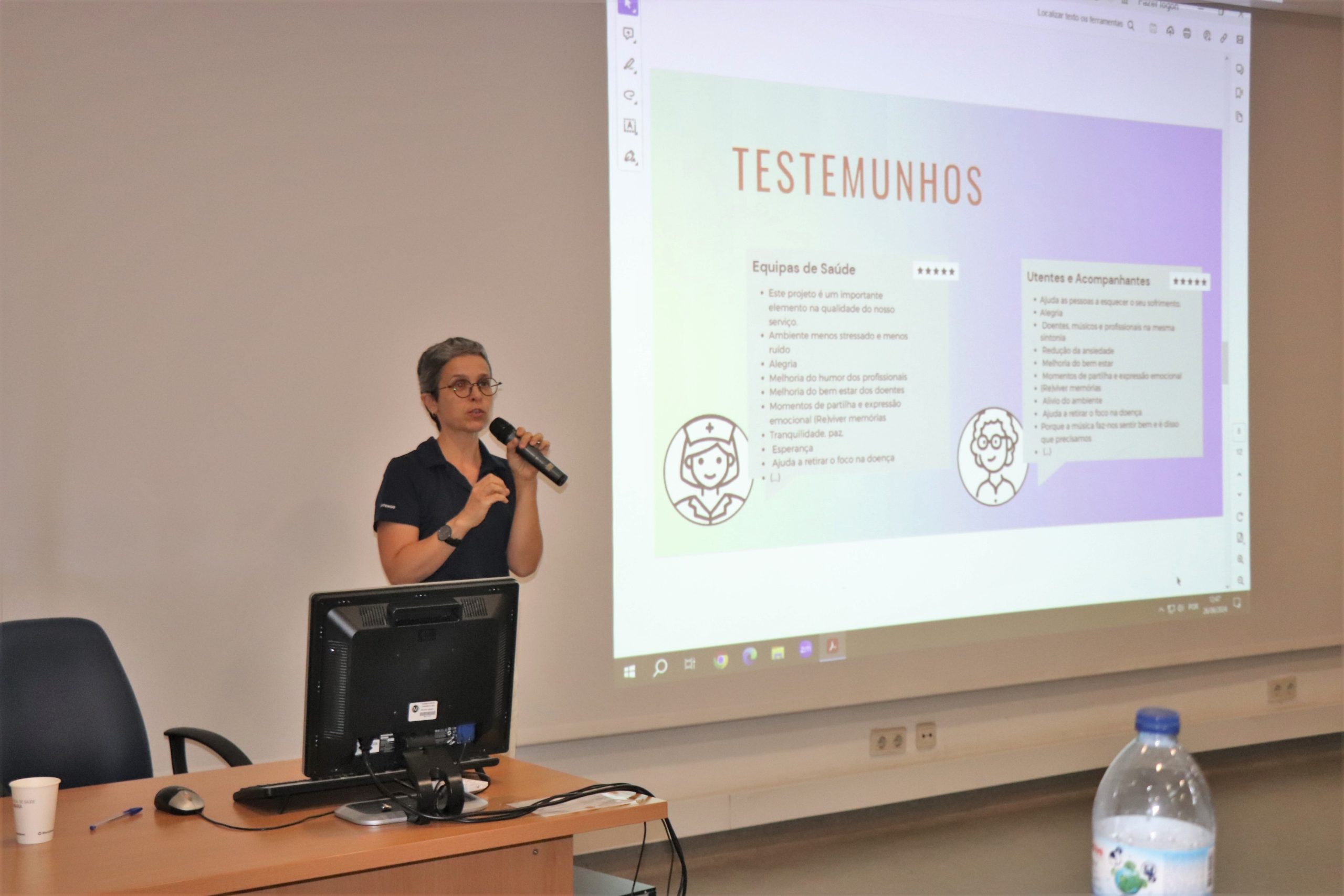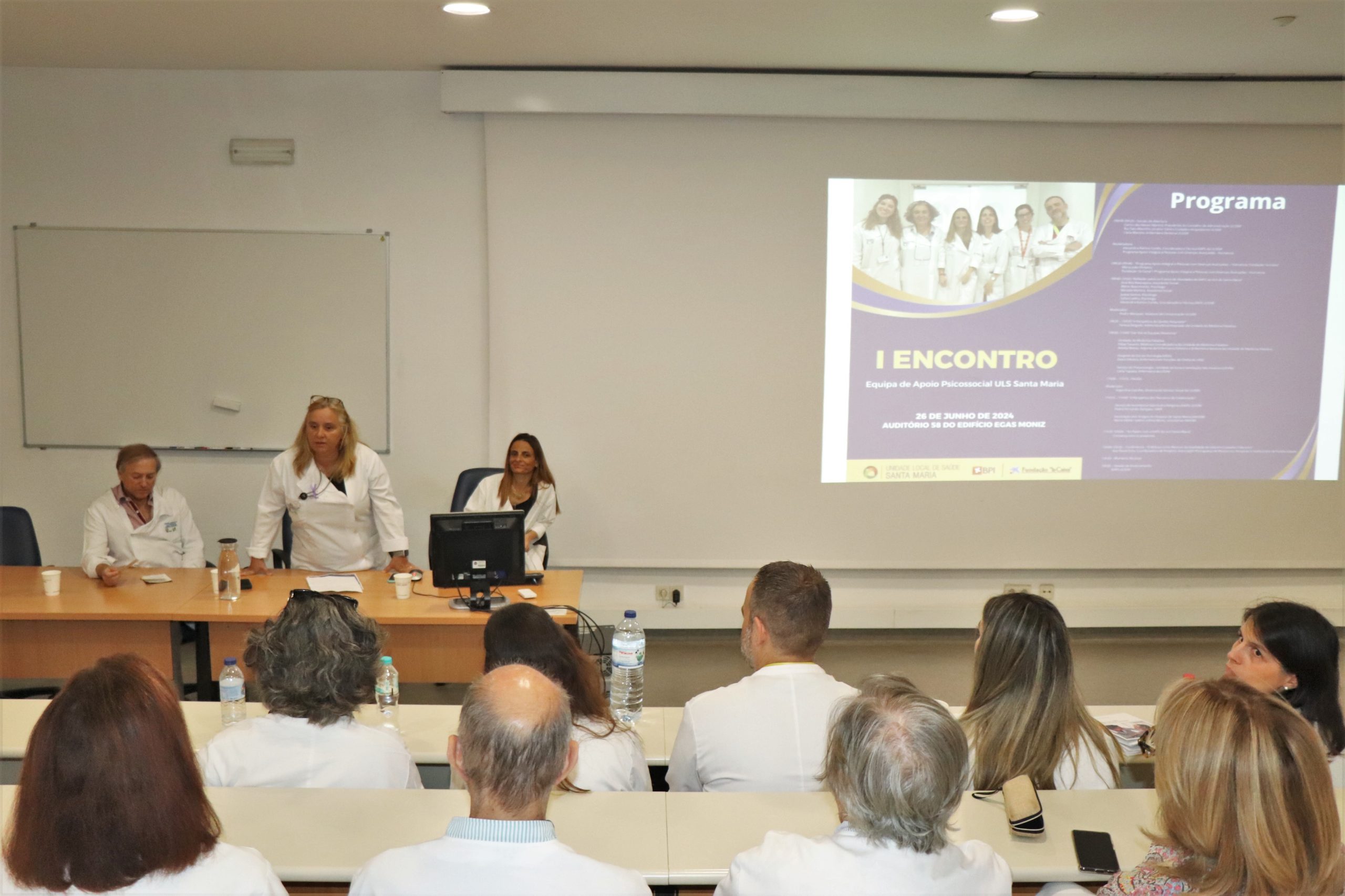 Um apoio elogiado pelos serviços hospitalares que mais diretamente trabalham com a equipa. Filipa Tavares, coordenadora da Unidade de Medicina Paliativa, e as Enfermeiras Amélia Matos, da mesma unidade e adjunta da Direção de Enfermagem, Dulce Oliveira, do Hospital de Dia de Oncologia, e Carla Tapada, da Unidade de Sono e Ventilação Não-Invasiva, deram testemunho da importância do trabalho da EAPS junto dos doentes, familiares e até dos profissionais, também estes, alvo de suporte nestas áreas de forte impacto emocional.