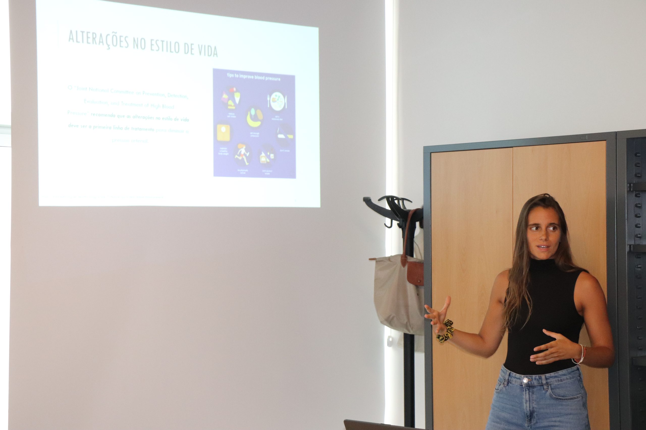 Ao longo da sessão, foi sublinhado que as alterações no estilo de vida devem constituir a primeira linha de tratamento para a redução da pressão arterial, destacando-se a importância de uma alimentação equilibrada. Entre as recomendações partilhadas estiveram: