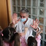 Seguiu-se uma demonstração prática conduzida pelo Higienista Oral Dr. Nuno Gonçalves, que ensinou a técnica correta de escovagem dentária e acompanhou as crianças numa experiência prática, orientando-as na lavagem dos dentes. Por fim, foi realizada a aplicação de verniz de flúor nos dentes molares das crianças previamente autorizadas pelos encarregados de educação.